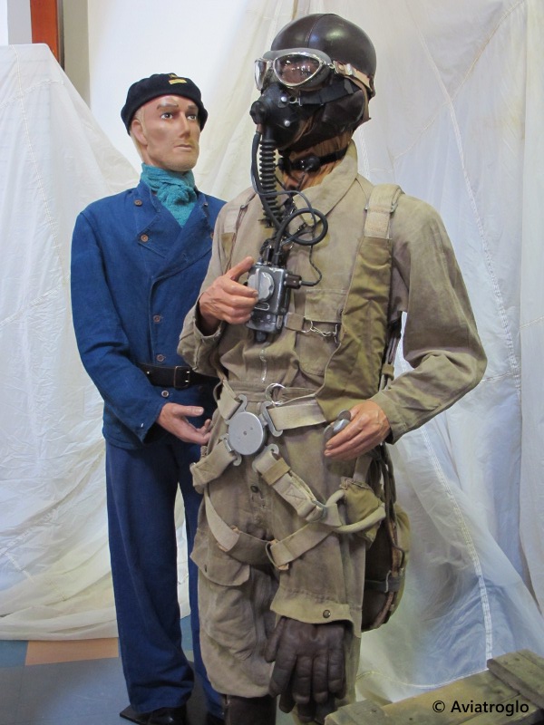 Pour cette exposition des emblèmes en bois peints ont été réalisés : deux emblèmes d’un groupe de bombardiers allemand Stuka et deux emblèmes d’escadrilles d’un groupe de chasse français.